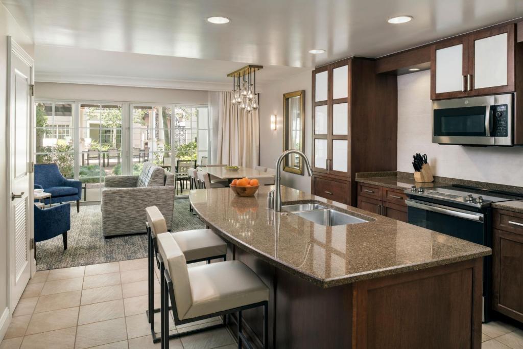 Enjoy Marriott’s Lakeshore Reserve, situated on 500 acres (202 hectares) of tropical landscaping that define Orlando’s Grande Lakes resort. Accommodations include two- and three-bedroom townhouses and one-, two-, and three-bedroom villas with all the comforts and convenience of a vacation home. Your visit will be an experience your family will treasure. Guests can access the outdoor pool at the adjacent JW Marriott Orlando for an entry fee of $50 per unit per day for groups of up to four people. Pool hours are Monday through Sunday, 8 a.m. to 8 p.m.